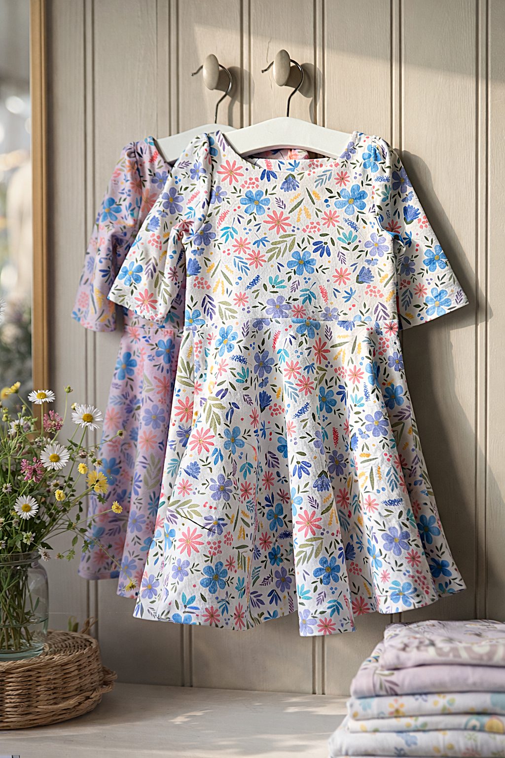 Available in Lavender and White in the Meadow print.